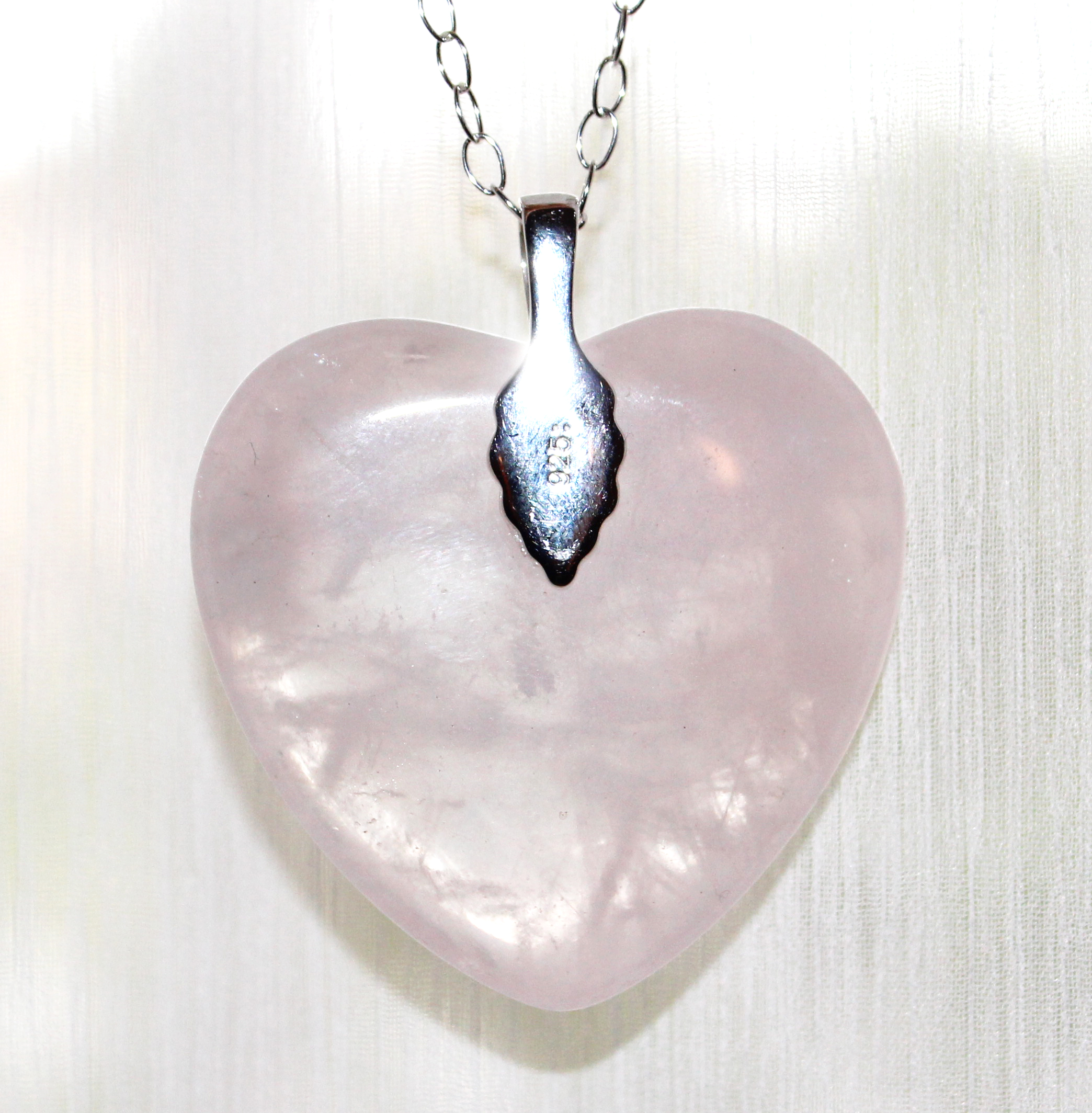 Luminous, icy pink Rose Quartz wrapped in fine, pure silver with a pure sterling silver, 18” adjustable chain with lobster clasp. All silver is hypoallergenic (contains no lead or nickel) and American made.